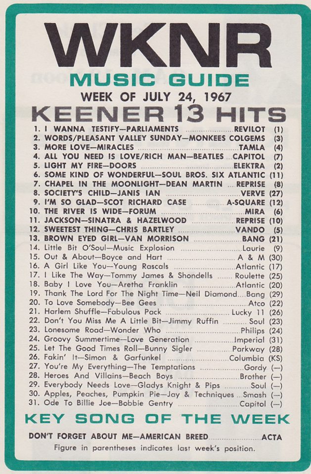 WKNR (Keener) Top 31 List from July 24, 1967